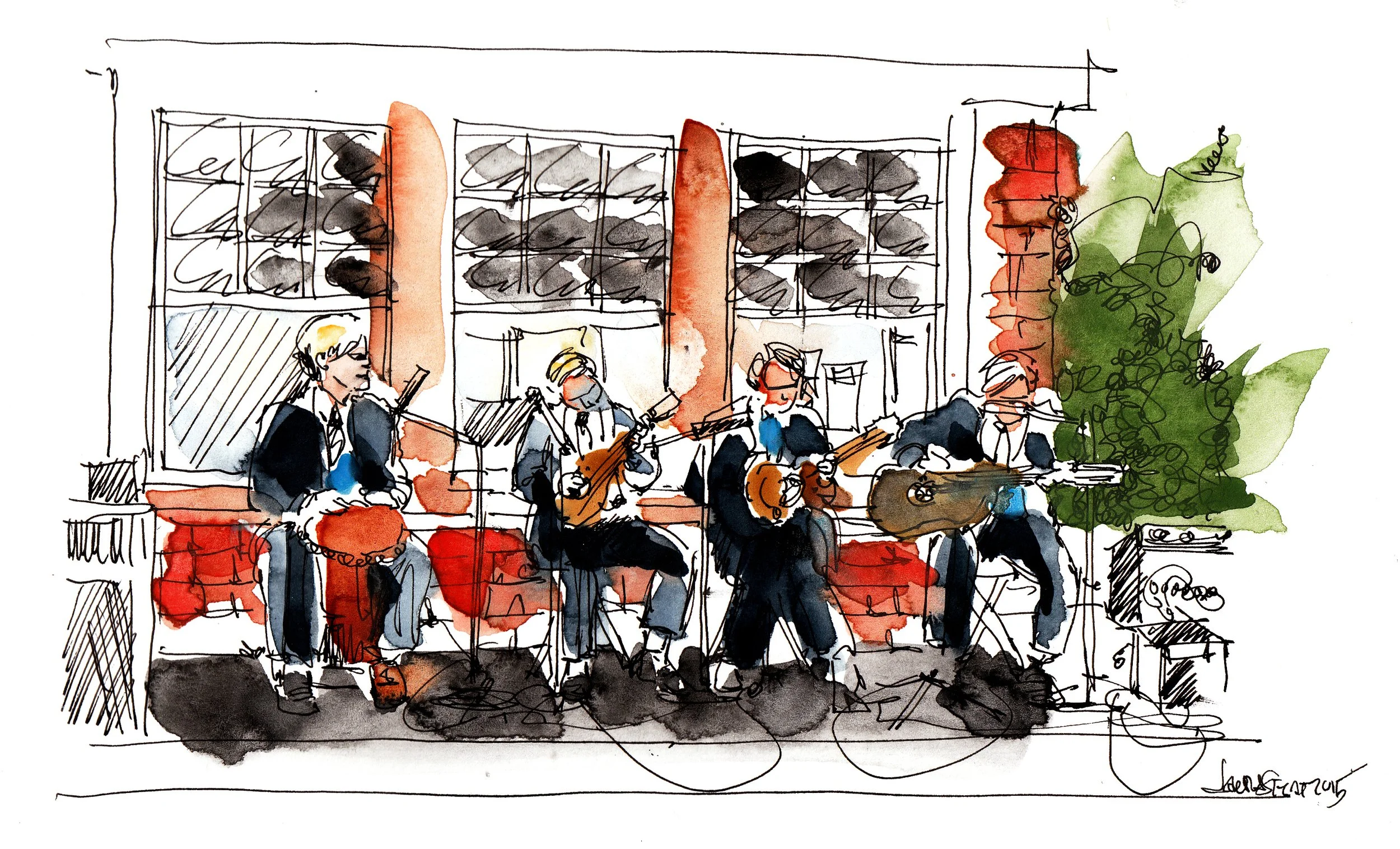 We will sketch your wedding and your guests, in watercolor or markers. No need to sit down for it. We will take photographs of you and your guests while you enjoy your the evening. All the illustrations will be ready at the end of the event!